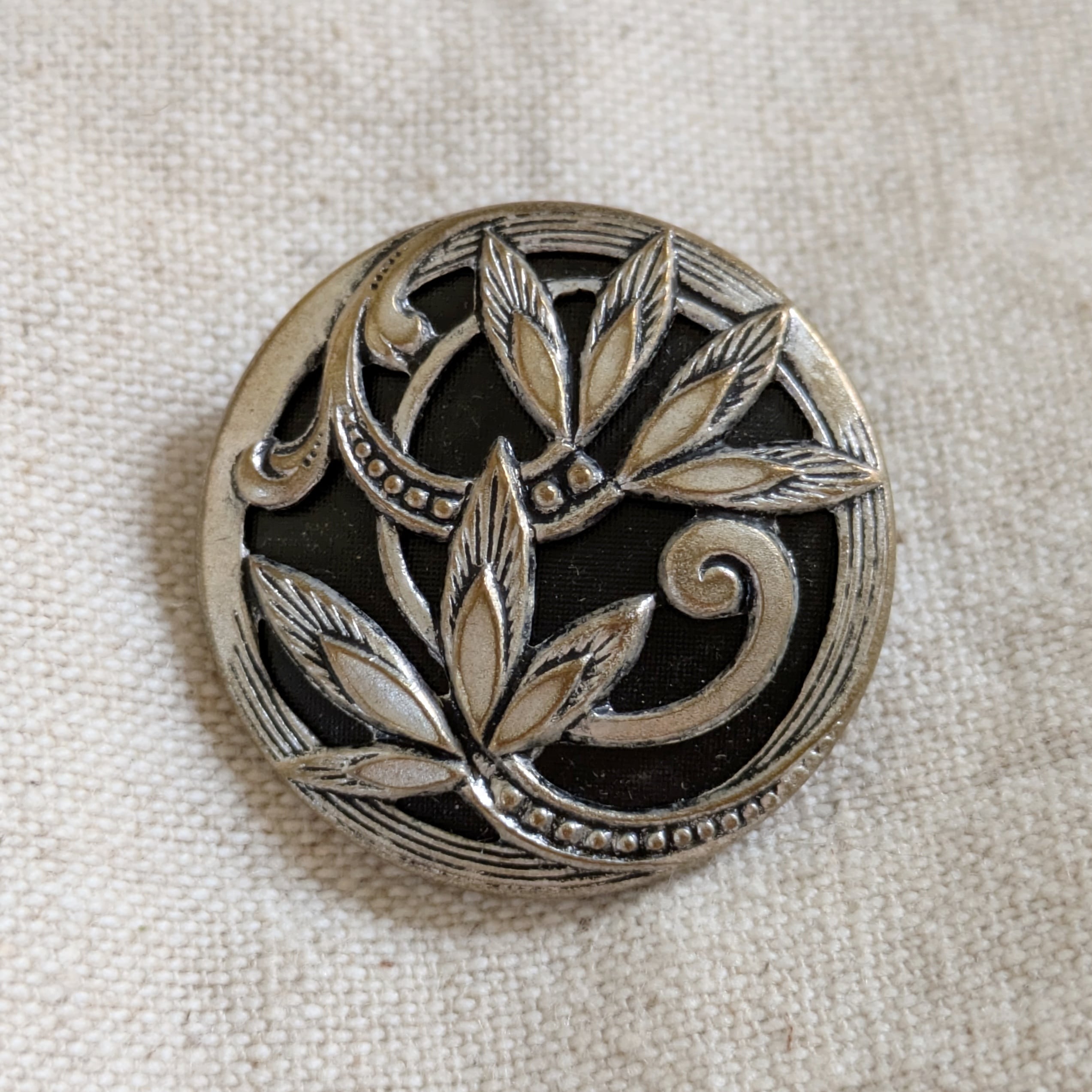 迫力ある植物の図案が美しいアンティークメタルボタン。